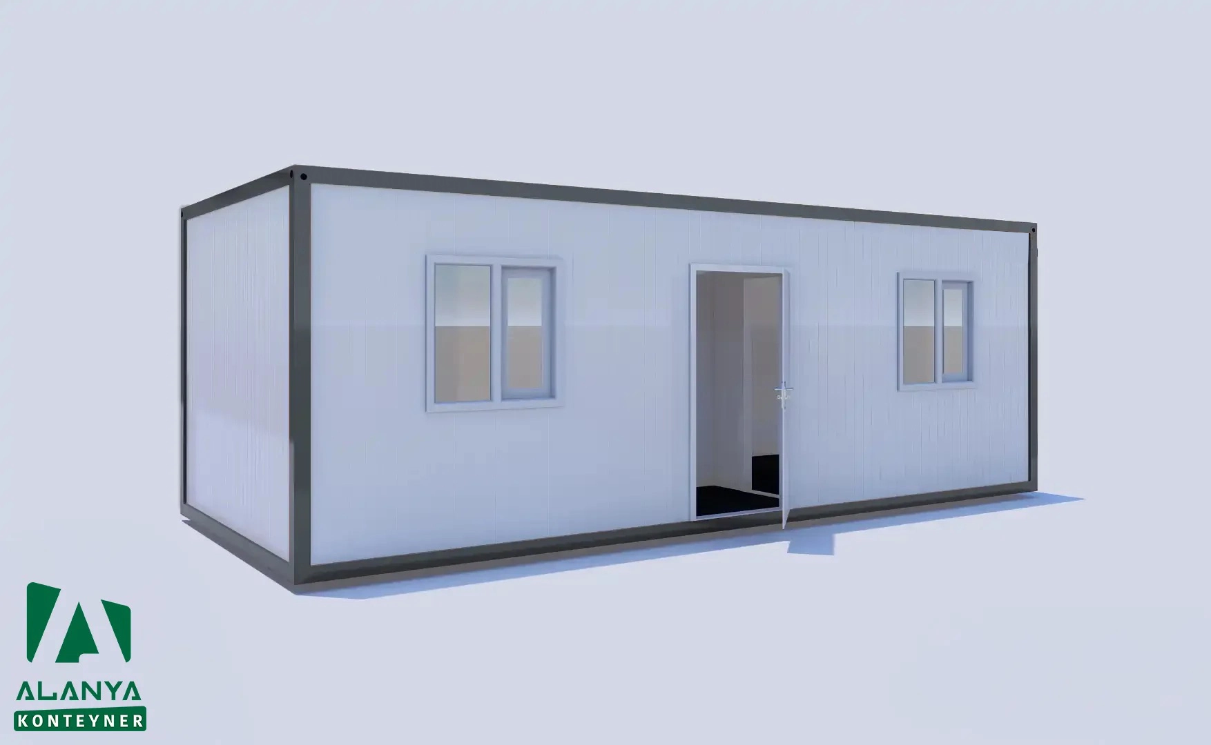 Bei Alanya Konteyner haben wir das 300×700 K303 Container-Modell mit Einzeleingang und zwei Räumen entwickelt – für Kunden, die eine praktische, komfortable und vielseitige Lösung suchen. Dieses Modell ist ideal als Wohn- oder Arbeitsraum einsetzbar.